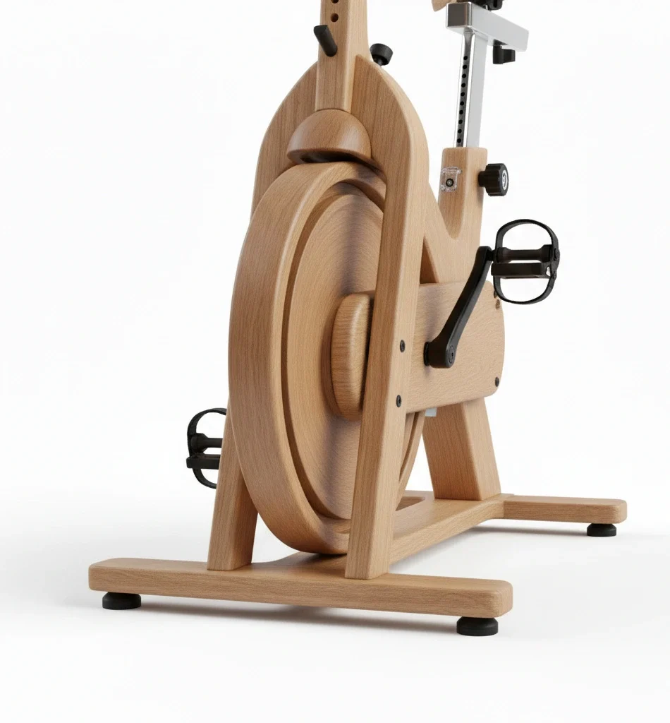 Kodėl šiam praktiškam modeliui pasirinkta būtent medžio apdaila? Mūsų dviratis treniruoklis išsiskiria tuo, kad natūralus medis veikia kaip efektyvus garso ir vibracijų slopintuvas. Medinės detalės sugeria mechaninį smagračio sukimąsi, todėl 8 lygių magnetinė sistema veikia dar tylesniau. Tai užtikrina, kad jūsų treniruotė netaps triukšmo šaltiniu kitiems šeimos nariams, o natūralaus medžio tekstūra suteiks erdvei jaukumo, kurio neturi standartiniai plastikiniai ar metaliniai įrenginiai.