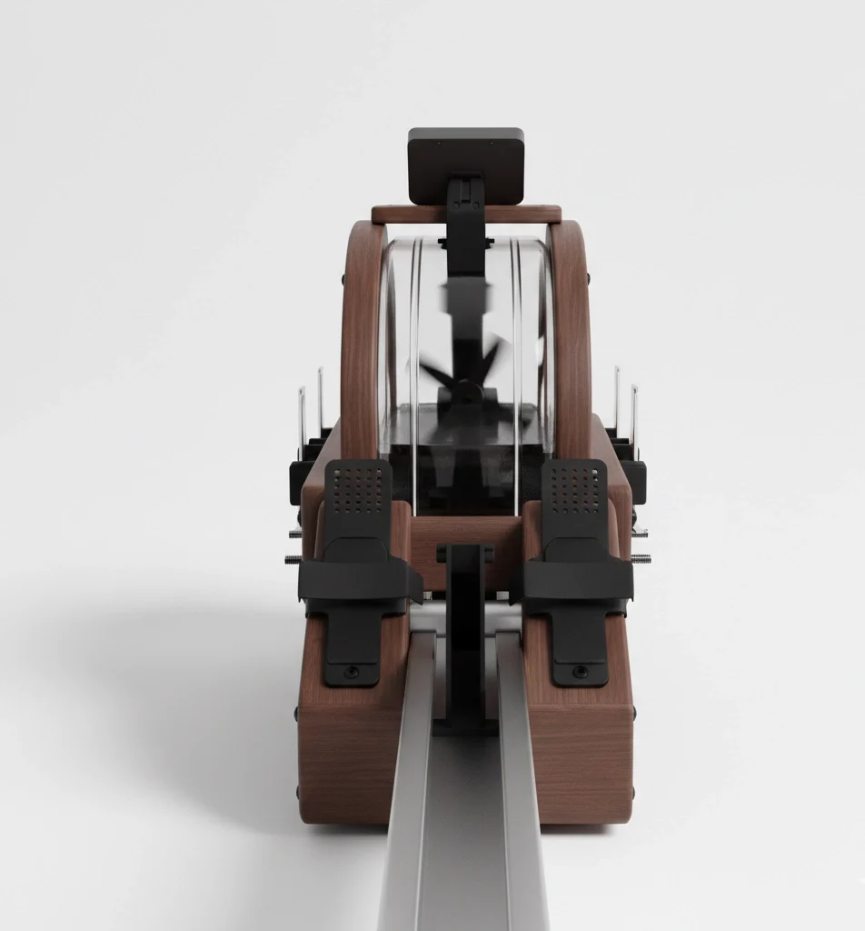 Kodėl šiam profesionaliam modeliui pasirinkta būtent medžio apdaila? Mūsų irklavimo treniruoklis išsiskiria rankų darbo detalėmis, kurios suteikia įrenginiui vizualią šilumą ir solidumą. Natūralus medis čia veikia ne tik kaip prabangos elementas – jis yra puikus amortizatorius, kuris sugeria mechanines vibracijas ir magnetinės sistemos sukeliamus garsus. Tai užtikrina itin tylų veikimą, leidžiantį jums mėgautis treniruote bet kuriuo paros metu, neblaškant namų ramybės.