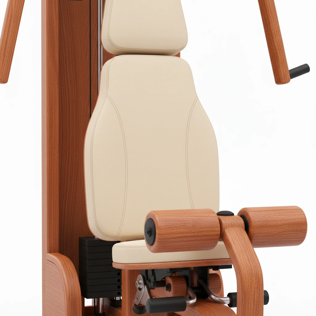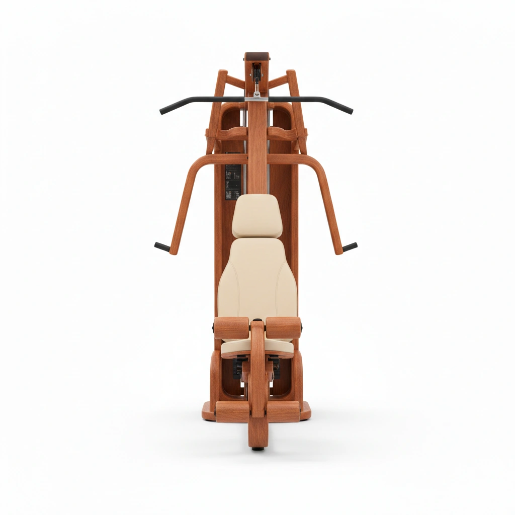 Skirtingai nuo masinės gamybos įrenginių, šios medinės jėgos staklės pasižymi kruopščiai parinkta natūralaus medžio apdaila. Mūsų meistrų rankomis apdirbti mediniai elementai suteikia treniruokliui vizualinio lengvumo ir šiaurietiško jaukumo. Mediena čia tarnauja ne tik kaip puošmena – tai natūralus akustinis barjeras. Ji efektyviai sugeria mechaninį triukšmą ir vibracijas, todėl svorių bloko judėjimas tampa itin sklandus ir tylus. Tai idealus sprendimas gyvenantiems butuose ar norintiems sportuoti ryte, kol namuose dar visi miega.